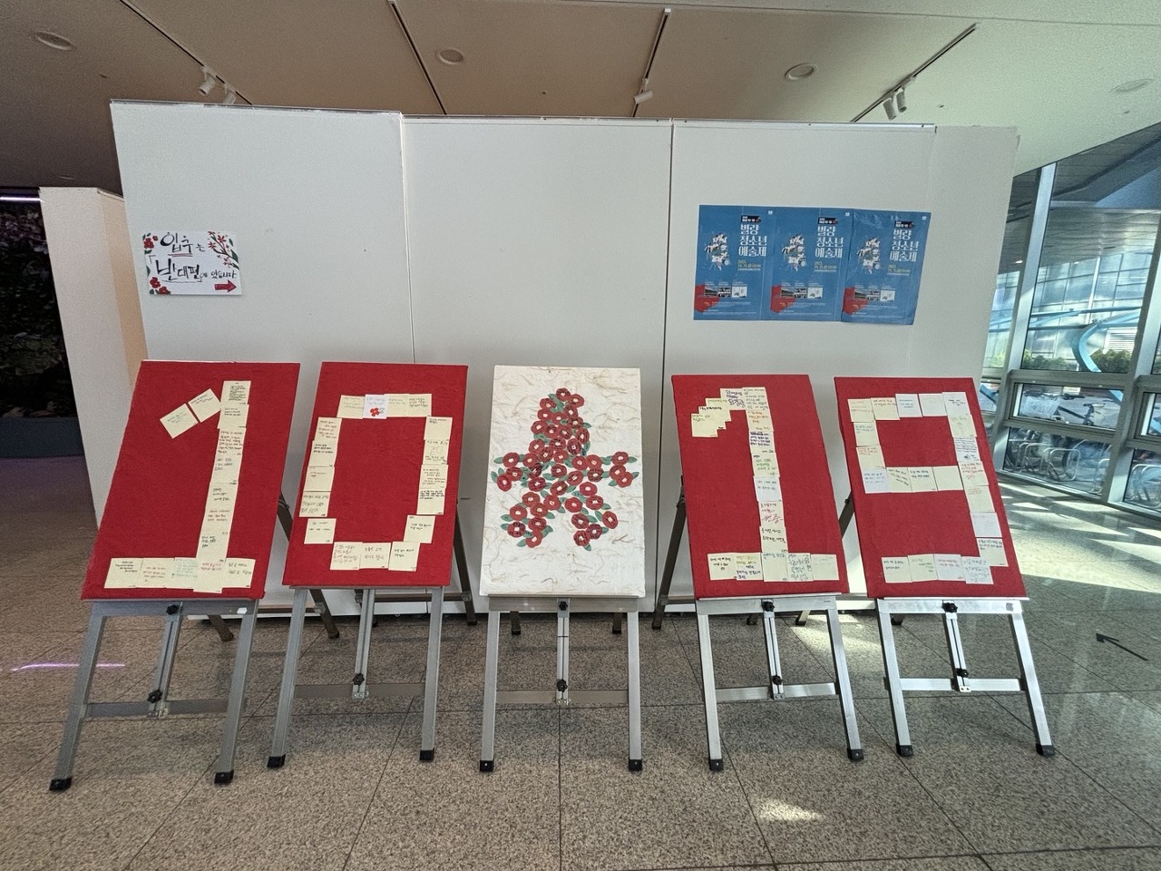 아무런 죄가 없는 가족과 친구, 자신의 삶의 터전을 잃은 희생자들의 아픔을 시화를 감상하며 그날의 아픔에 공감할 수 있었습니다. 모든 작품들을 붉은 실로 연결해 놓은 것이 인상적입니다.